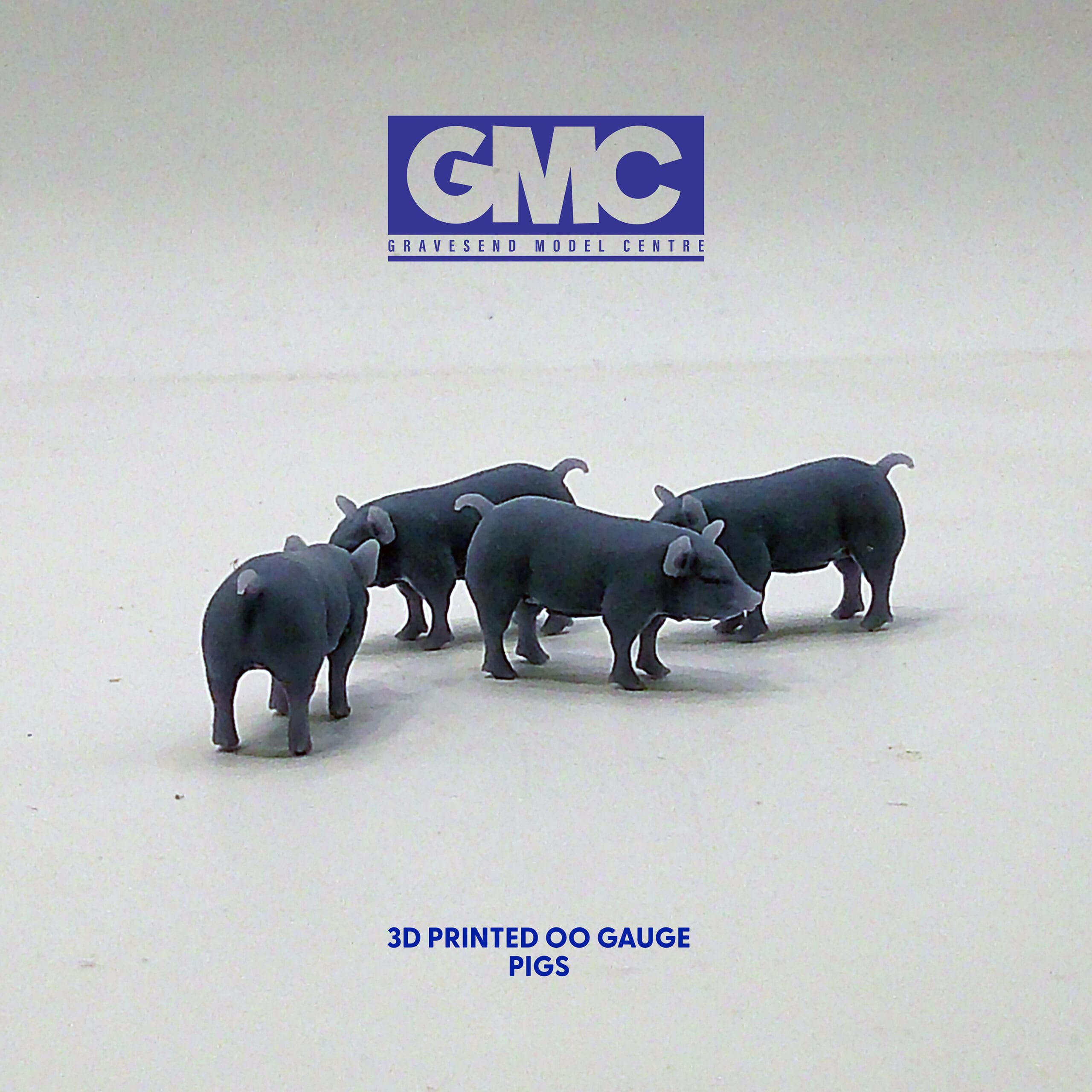 8 x OO Scale 3d printed Pigs. Items remain unpainted in a grey material.
