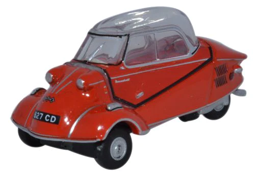 he Messerschmitt KR200 (Kabinenroller or Cabin Scooter) was a three wheeled bubble car, designed by German aircraft engineer Fritz Fend and produced in the Messerschmitt aircraft factory in Regensburg, Germany. Introduced in 1955, between then and 1964 when production ceased, approximately 40,000 rolled out of the factory. The Oxford replica features a hard top rather than the soft-top version. The car was designed so that the driver and passenger, riding tandem, got in through a canopy door which was hinged on the right side of the vehicle. The door included the windshield and window frames which then closed as a monocoque construction over the top of the occupants and was secured on the left hand side. The steering wheel/bar was like that in an aircraft and was much more responsive than comparable cars of its time. The engine comprised a 191 cc single cylinder 2-stroke model which was set in front of the rear wheel and behind the passenger seat. There is still a lot of interest in this unusual automobile nicknamed ‘Schmitt’ today, with enthusiasts all over the world willing to pay over 20,000 Euros for one, against its original DM2500 (1278 Euros)!