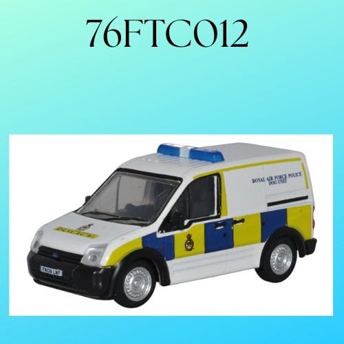 The Ford Transit Connect, RAF Police Dog Unit, decorated in white with the contemporary blue and yellow Police masking and yellow/red chevron warning paintwork across the rear doors. Registered with a civilian number plate FN06 LWF, reference to the Royal Air Force is a colourful crest on the doors with the wording Royal Air Force Fiat Justitia.