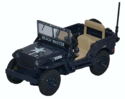 Here we see it as used by the Royal Navy in a striking dark blue with white military markings, including US Army star on the bonnet along with Beach Master wording. Note the signature 9-bar radiator grille which was implemented by Willys into the standard WWII Jeep by 1942. The interior is moulded in cream and a spare wheel is positioned across the back, rounding off a replica of one of the most universally loved military vehicles of the era. It is in great demand even today, when it evokes a real fun car in contrast to its original role.