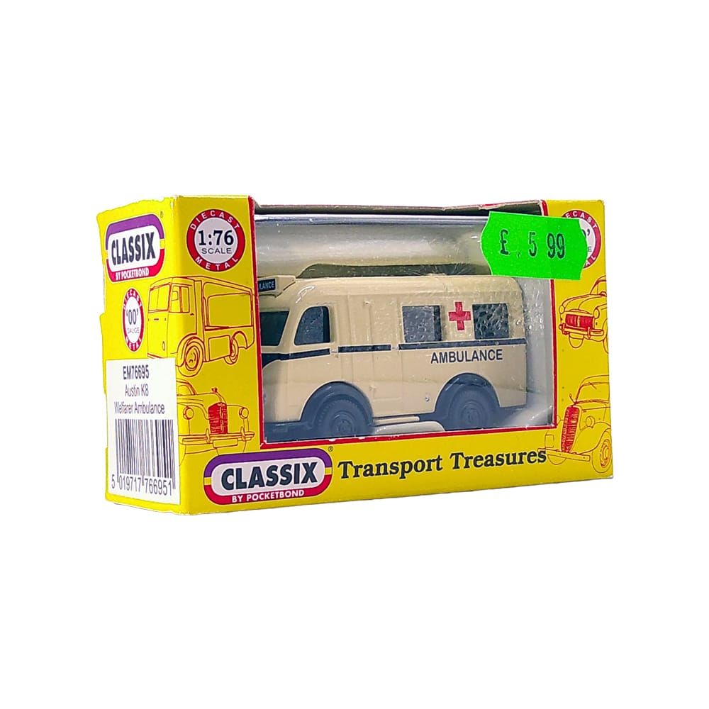 Relive a piece of post-war British social history with the Pocketbond “Classix” EM76695 1/76 Austin K8 Welfarer Ambulance. This meticulously detailed die-cast model is a superb recreation of the Austin K8, a vehicle that served as a vital part of community and emergency services.