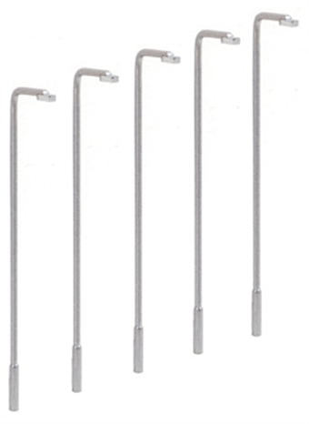 5 Steel type street lamps, 96mm high. Glue and paints required to complete model.
