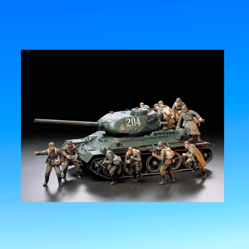 The main strength of the Russian counter-offensive was their tank troops. Following concentrated fire by their artillery units, the tank troops advanced in three groups, and many infantrymen rode on the tanks of the 2nd and 3rd groups. This infantry practice was unique to Russian tactics and was called “Tankoviy Desant” by the Russians. Since the Russian Ground Forces did not possess armored troop carriers like the German halftracks, an infantry battalion called the “Motor Rifle Unit” was attached to every tank brigade and assigned to close support the tanks. A Motor Rifle Unit consisted of about 500 infantrymen. PPSh-41 or PPS-43 machine guns as support arms. Soldiers carried as many magazines as possible, and advanced while riding on tanks. Once encountering an enemy”s defensive position, infantrymen would disembark from the tank, attack the position, and then return to the tank. These infantrymen were spearheads of the attack, and due to enemy”s defensive fire, liable to sustain heavy casualties.