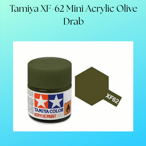 Tamiya XF-62 Acrylic Mini Olive Drab, water soluble acrylic paint.